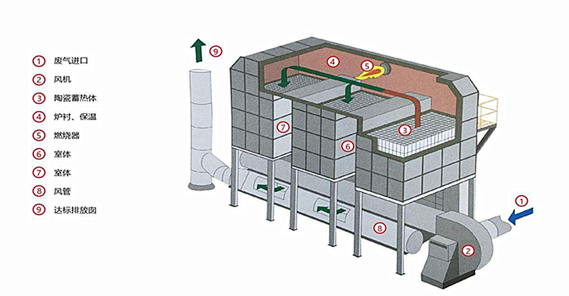 催化燃燒廢氣處理設備由預處理裝置、預熱裝置、催化燃燒裝置、防爆裝置組成。