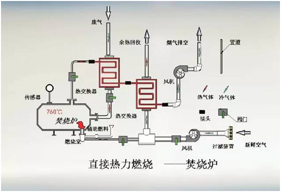 對于有毒、有害,而且不需要回收的VOC,熱氧化法是最適合的處理技術和方法。氧化法的基本原理:VOC與O2發生氧化反應,生成CO2和H2O。